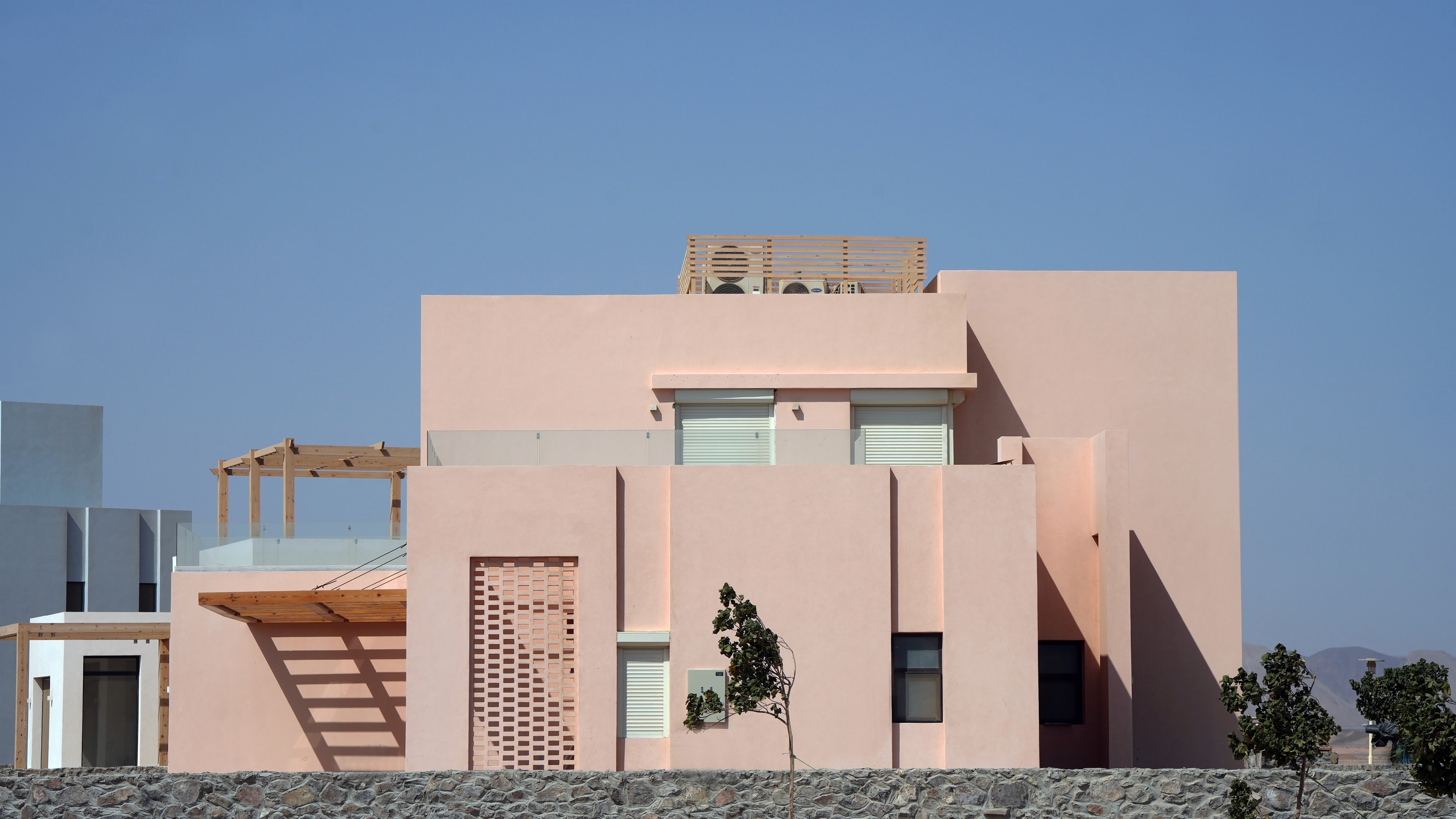 Ancient Hill’s architecture by Studio être for Villa Type A, Twin Villas, and Chalet buildings employ an interplay of space, perspective, shape, technology, materials, and light to create environmentally responsive architecture that provides a multitude of ways to enjoy El Gouna’s surrounding landscape.