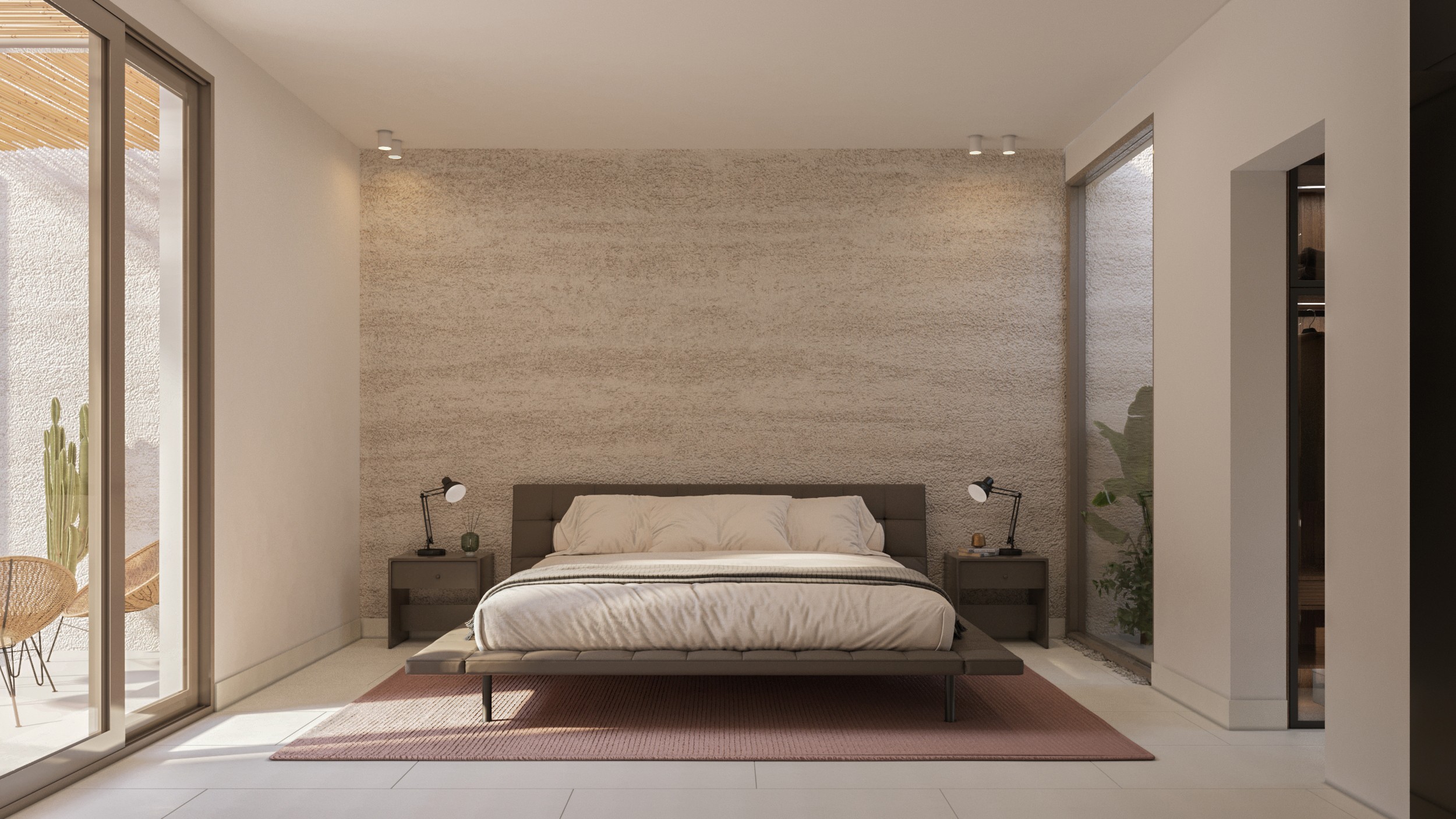Studio être emulates desert living, emphasizing the rammed earth architecture. Committing to this look creates a unique ancient atmosphere to Art Island. It is a fantastic way to turn an interior space on its head, bringing outside tones inside for an unexpected connection with nature, bringing the outdoors in with interior walls made of rammed earth. Natural, curved lines add to the simple style created by the warm, neutral hues of the sun-dried desert.