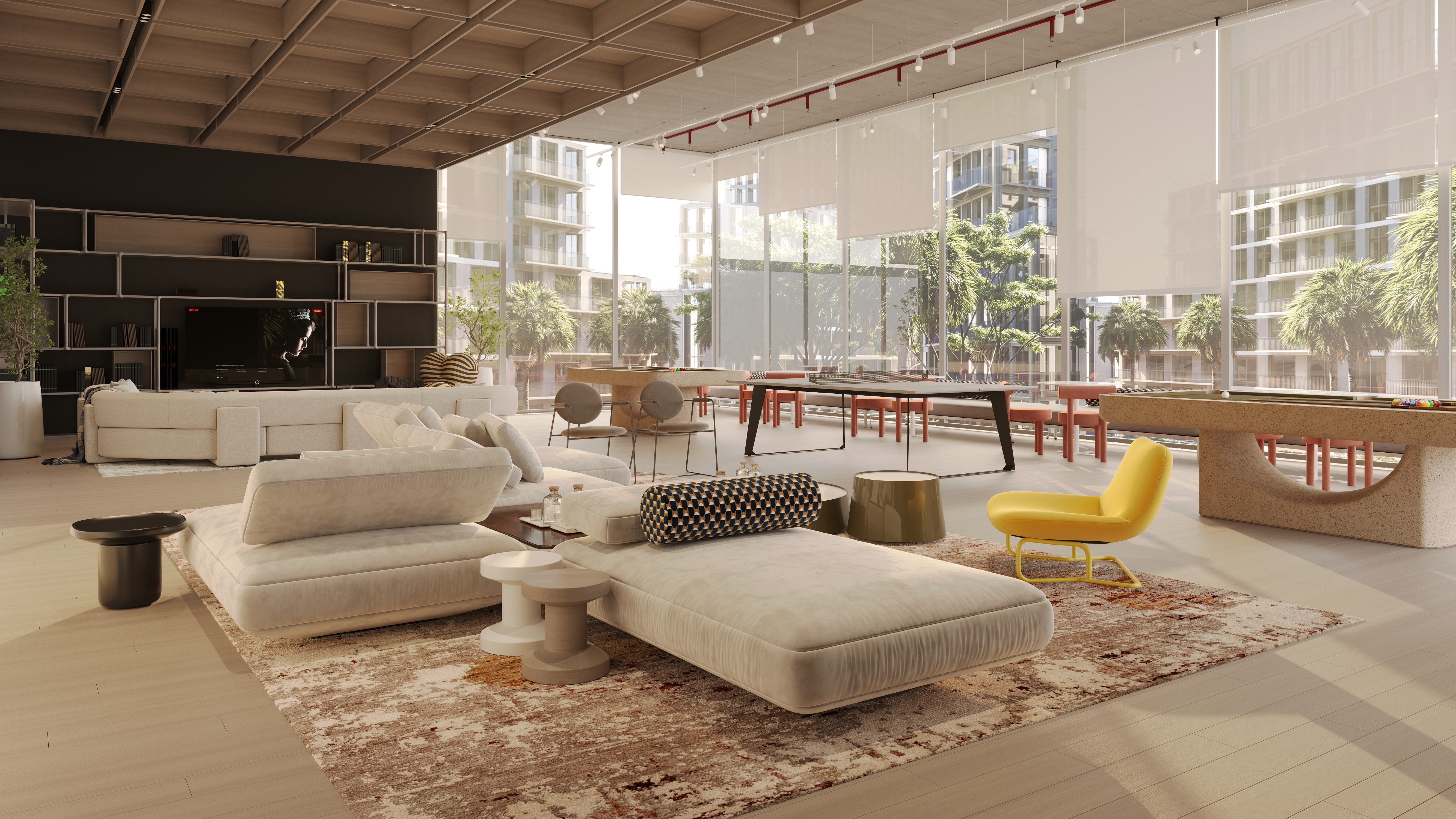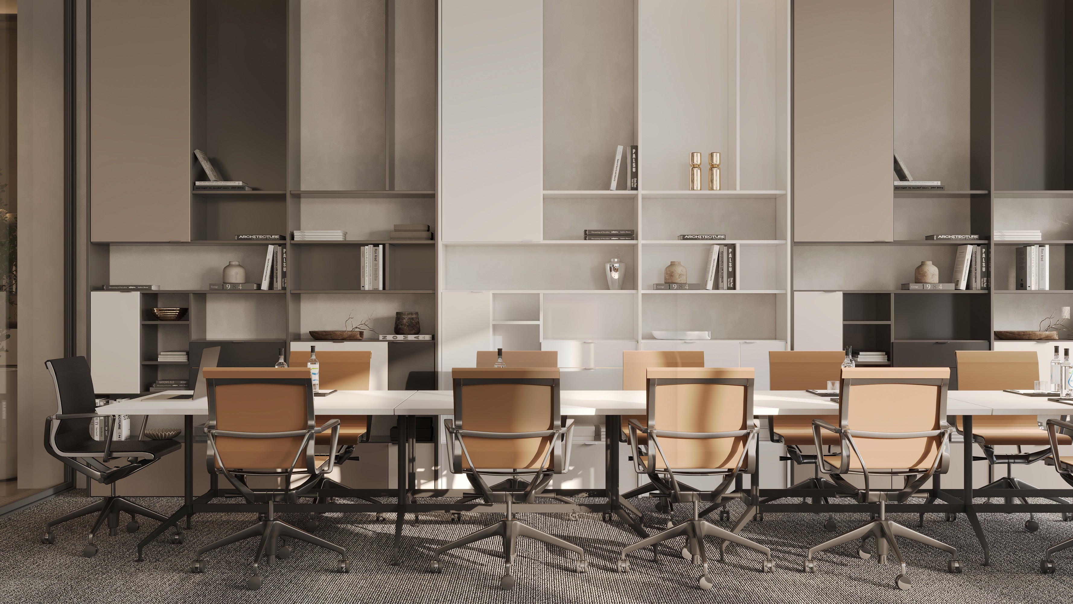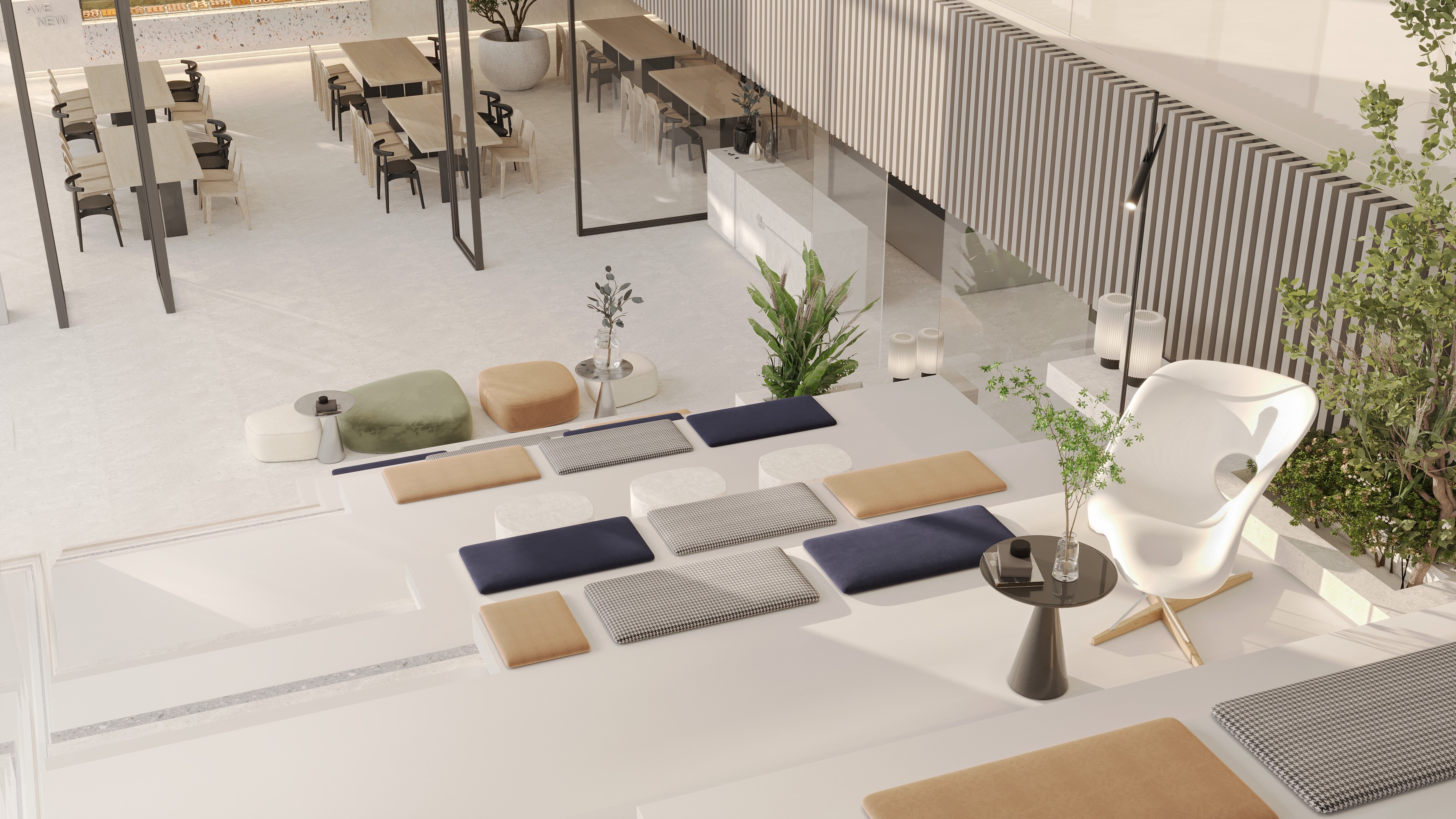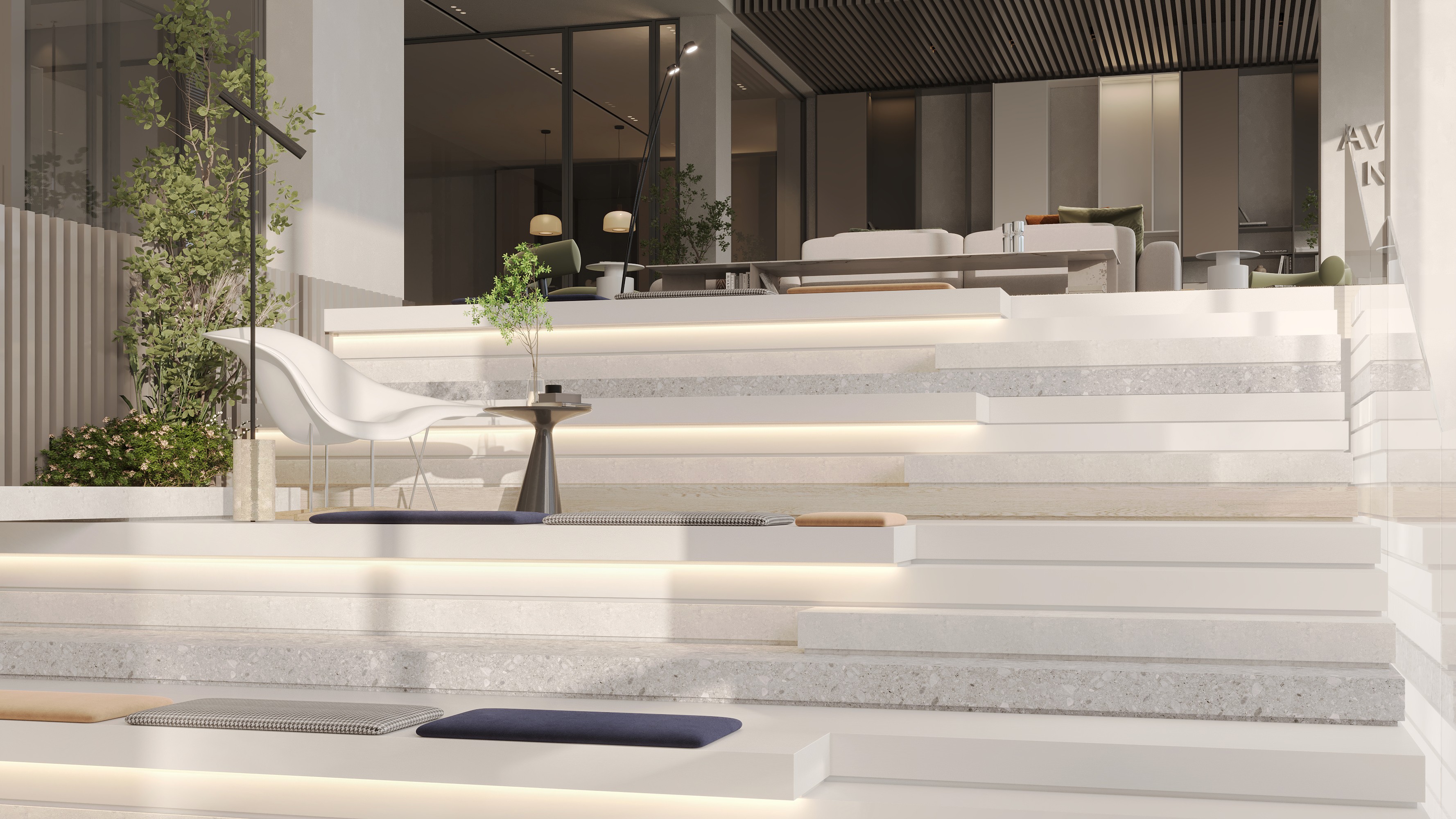 The design is centered around flexibility, modernity and connection. A modular approach to furniture and space planning allows for effortless adaptability, while a refined palette of brushed steel, micro-cement, and neutral tones create a cohesive, minimalist aesthetic.