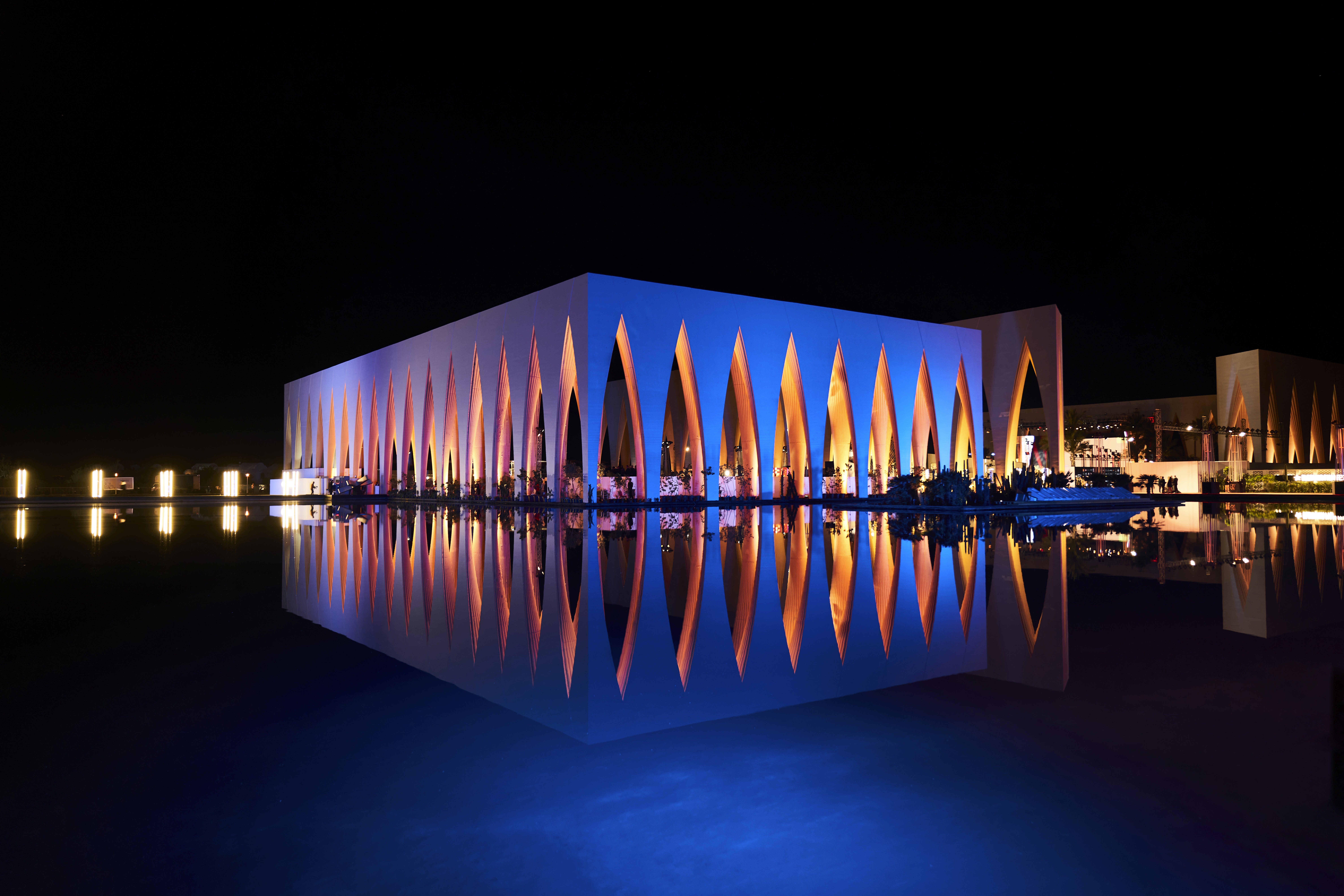 GFF is a restrained experiential intervention rooted in context and clarity. Aligned with the existing colonnade and using reflective surfaces to abstract and echo its surroundings, the design frames screenings, performances, and communal moments — prioritizing place, rhythm, and collective experience.
